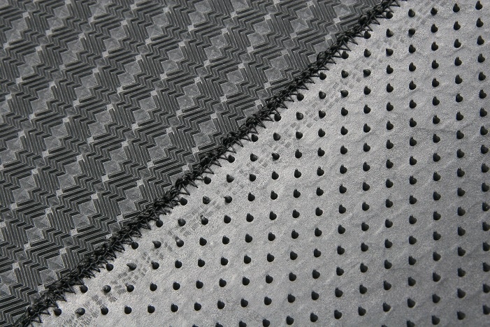 当社の生地はバリエーションの多さが人気。高級感、耐久性、発色性など、様々なご要望に対応できるよう、柄・素材の異なる16シリーズをご用意しております。熟練職人による手切りブレス裁断で、綺麗なカットラインに仕上がります。 ヒールパッドとロック糸はマットの形状や素材に合わせて使い分け、裏ゴムは当社オリジナルの材料調合で温度変化に強い素材を実現しました。 マットのズレを防止するストッパーホールを自社開発しているのは当社だけ!適切なサイズでの生産が可能となっています。